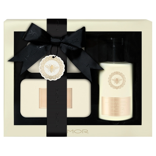 MOR Cosmetics Gift Set Essentially Sweet Honey Nectar. The Essentially Sweet gift set features 2 of MOR's indulgent beauty products in delightful Honey Nectar. This signature scent is marked by sweet brown sugar that melts into golden honey on a base of candied almonds and warm vanilla milk. $22.00. Buy